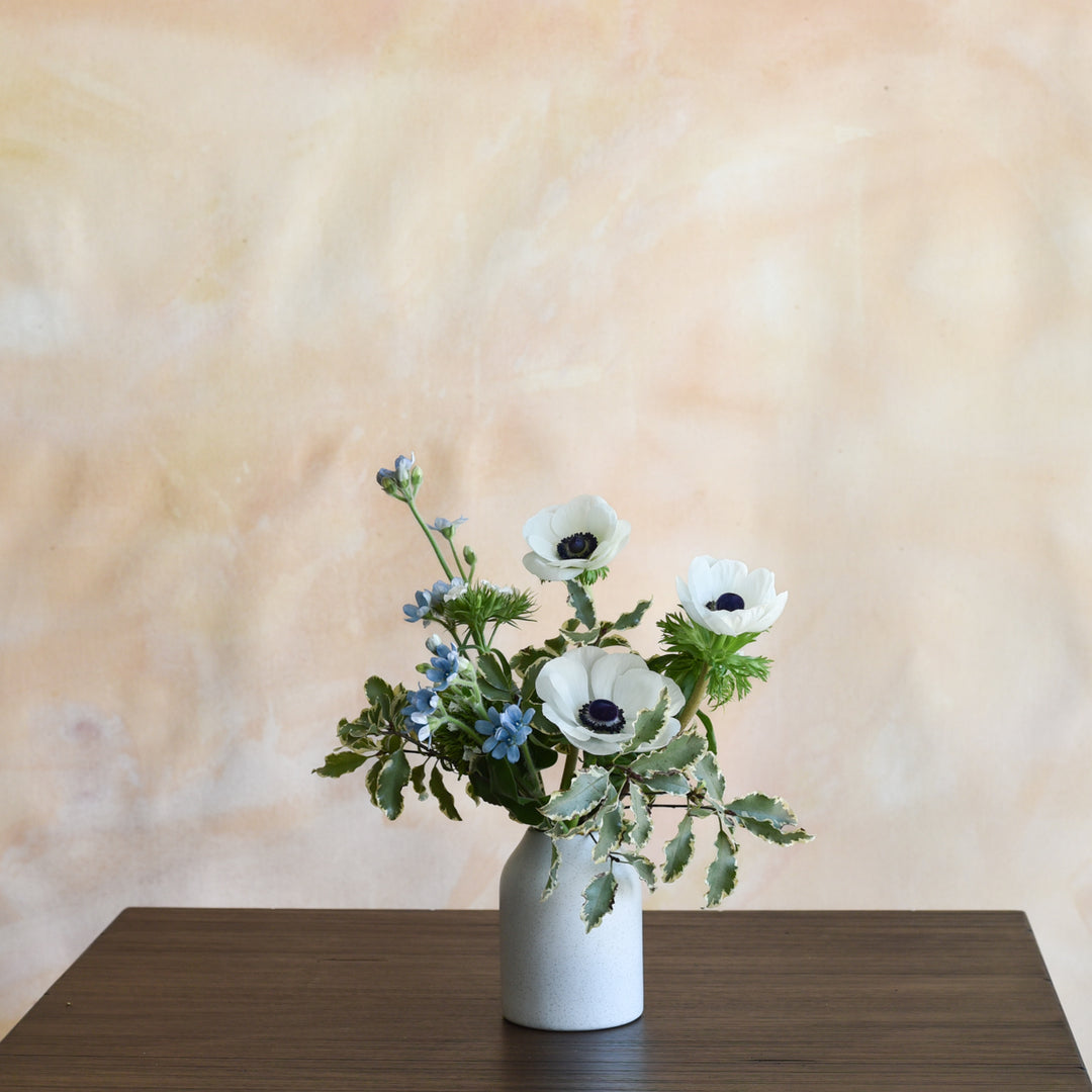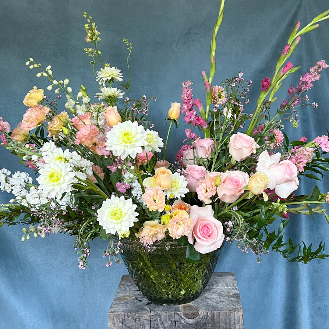 A Carolina Flowers garden-style arrangement contains a beautiful selection of locally grown, seasonal blooms, artfully arranged. Each flower arrangement features a neutral ceramic vase to use time and time again. We grow the majority of our flowers on our flower farm near Asheville, NC.