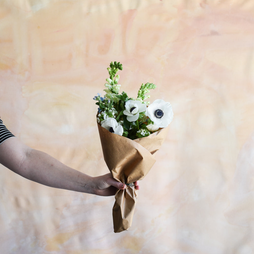 Passover flowers in white and blue are a perfect way to dress up the Seder table. Bring these beautiful Passover blooms as a gift, or enjoy at home. Choose from a Passover arrangement in a vase or a Passover bouquet that comes wrapped in paper for you to arrange at home. Passover flowers are available for pick up at our flower shop or delivery throughout Asheville, NC.