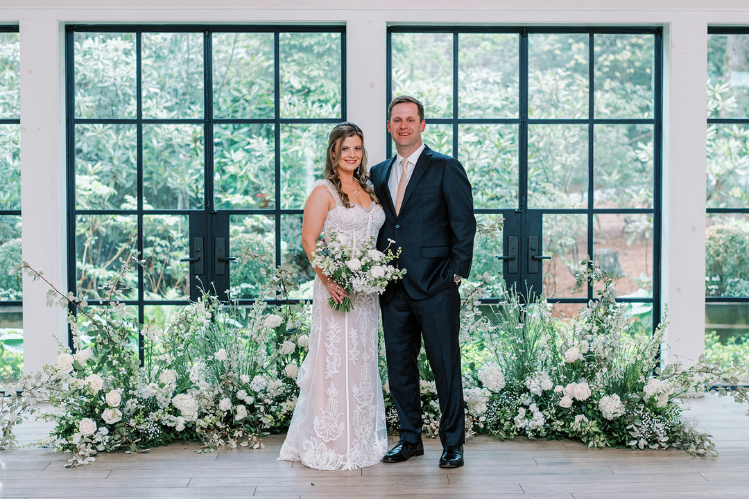 An abundance of white and green florals brought to life the Farm at Old Edwards in Highlands, NC, for Marin and CJ's spring day.