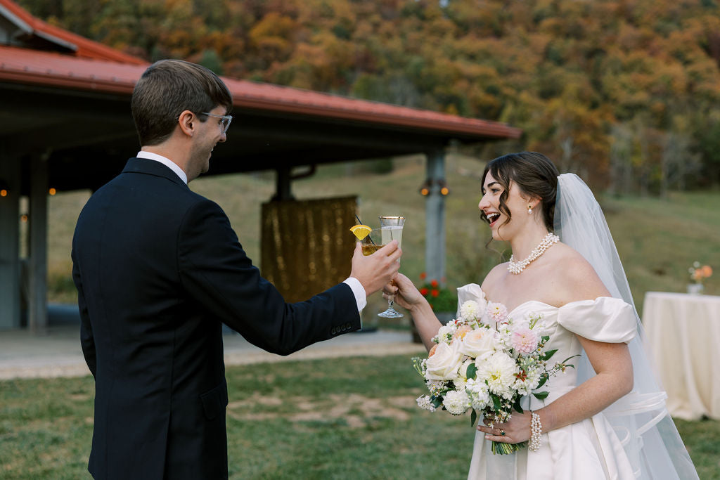 Killian and Jeremy's beautiful wedding at Claxton Farm in Weaverville, NC, accentuated the beauty of the mountains. Claxton has an uncommonly pristine view without development, and the fall foliage on the slopes creates a beautiful backdrop to the ceremony.
