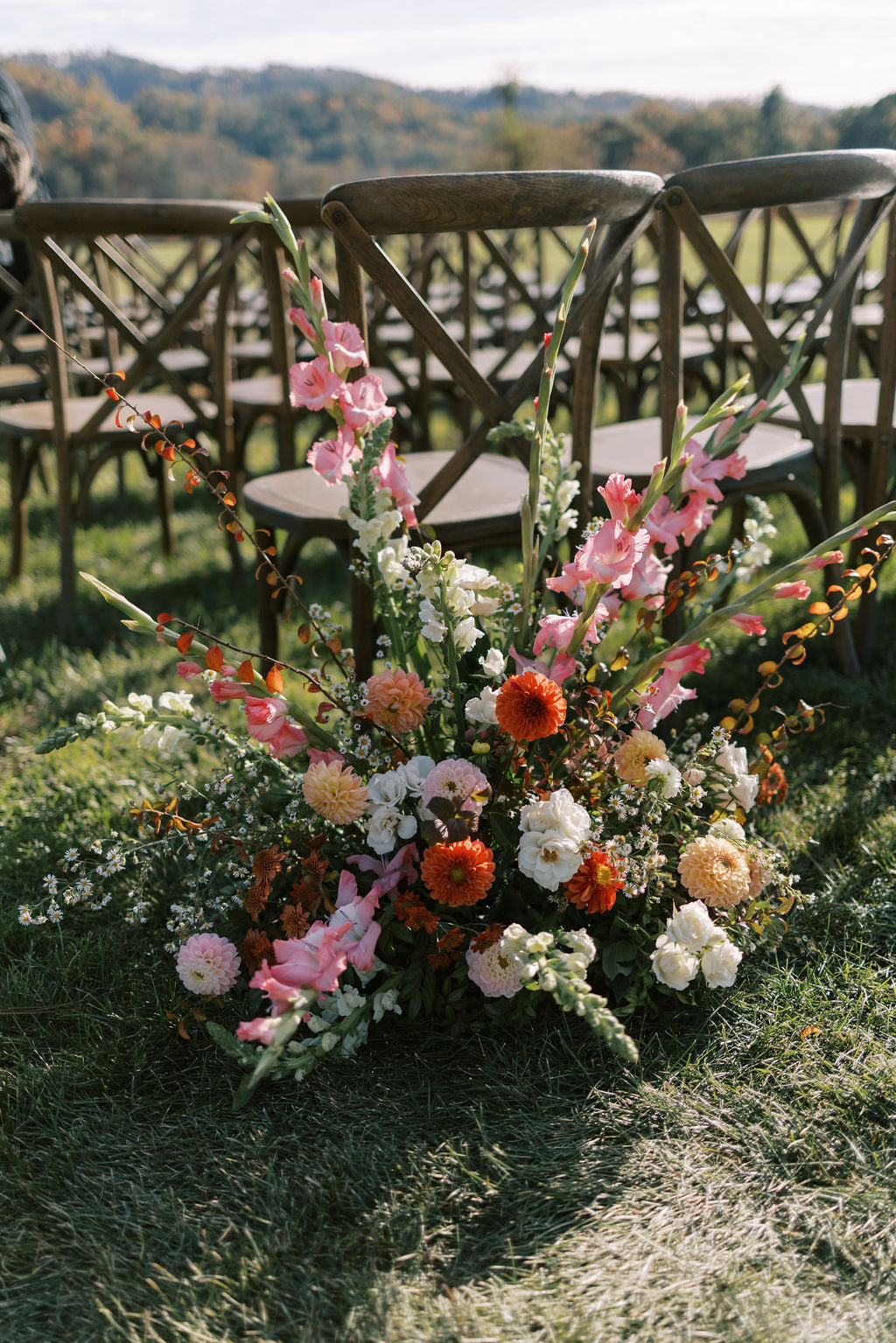 We highlighted the entrance to the aisle with two meadow arrangements that created the perfect frame for the recessional.