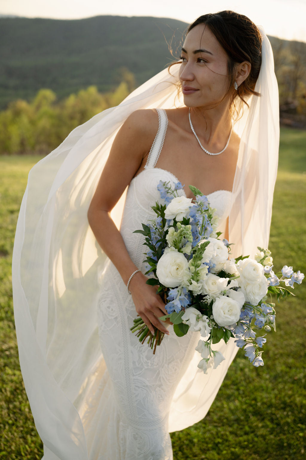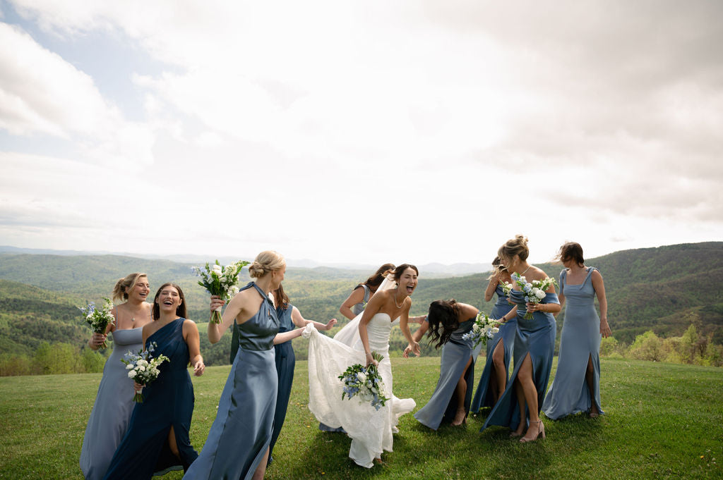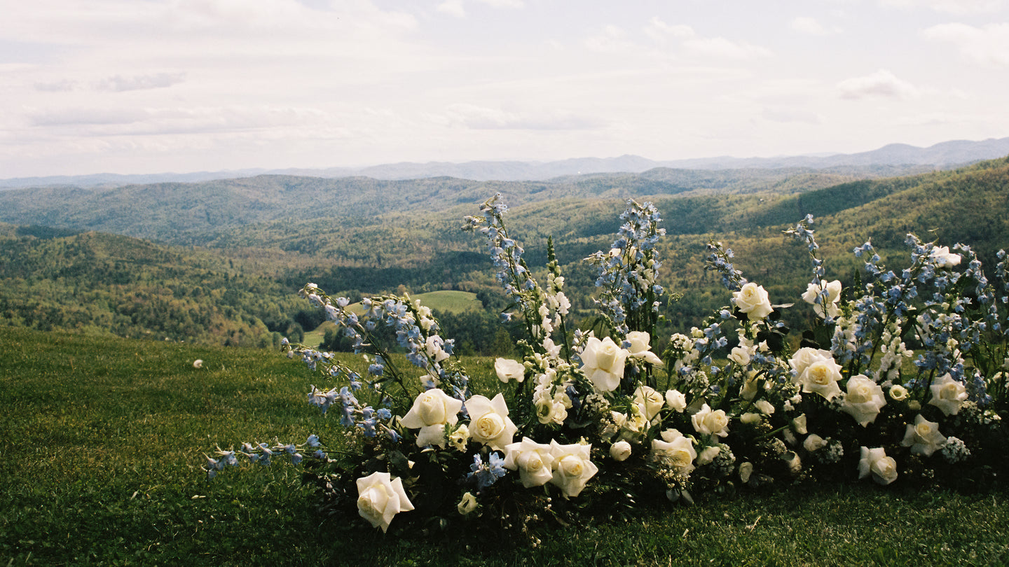 The flowers accentuated the fresh greening of the mountains as spring begins! Keeping our florals low to the ground gave them a natural feeling, as if they were growing!