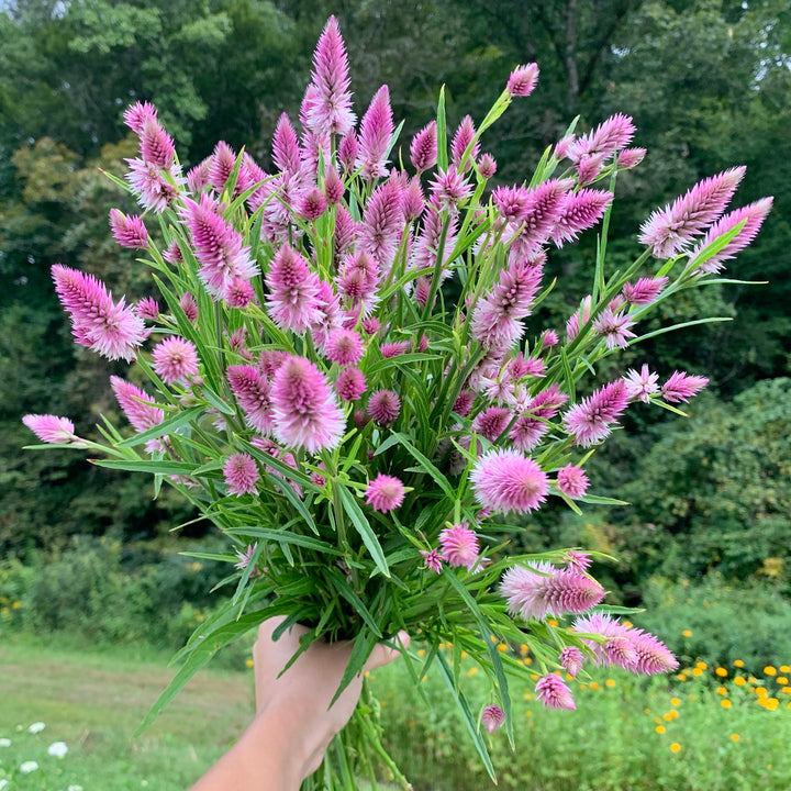 As the year progresses, dahlias, lisianthus, basketflower, rudbeckia, zinnias and cosmos come into bloom. We pair them with an array of other blooms and foliages, such as lilies, calla lilies, gladiolus, liatris, larkspur, scabiosa, sunflowers, basil, dusty miller, delphinium, eryngium, bee balm, feverfew, echinacea, celoisa, ageratum, marigolds and gomphrena. Many of these flowers come in a wide range of colors, so we can match any mood!